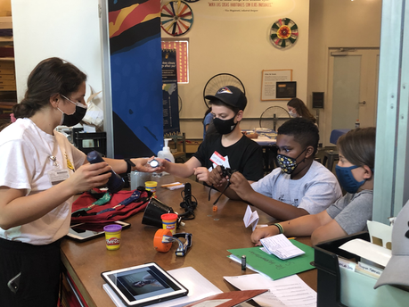 Left: Members of the Durham, NC community engage with art inspired by the Invisible Organ Film. Right: Ignite students gather at the Museum of Life and Science.